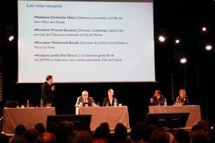 - Regards croisés autour des grands enjeux du sdsf, avec les témoignages de Christelle Hebel, référente parentalité à la ville de Saint-Maur-des-Fossés, Franck Gousset directeur académique adjoint à l’Éducation nationale, Mohamed Benali, directeur du centre social Balzac à Vitry-sur-Seine et Joëlle Del Greco, coordinatrice générale de l’Acepprif ;