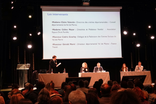 - L’attractivité des métiers, avec les retours d’expérience de Claire Valentin, directrice des crèches départementales du Val-de-Marne, Céline Meyer, directrice de l’association EDFA, Cédric Gourlay, délégué de la Fédération départementale des centres sociaux et Gérald Marol, directeur départemental de France Travail.